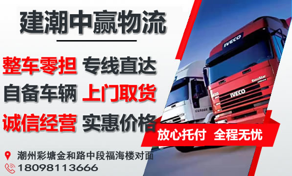 潮州到海北物流专线是建潮中赢物流主营重点物流线路之一,提供4.2-17.5米整车包车运输,零担专线,可上门取货,量大免费提送货;潮州到海北货运专线价格实惠,欢迎来电咨询。